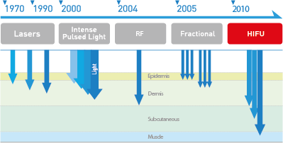 С появлением аппарата DOUBLO появилась возможность добиться омоложения на уровне SMAS без операции. Его работа основана на технологии HIFU – воздействии на ткани высокоинтенсивным сфокусированным ультразвуковым излучением.