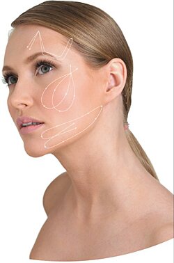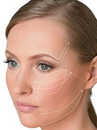 поднятия бровей и/или уголков рта;- устранения складок в носогубной области и в уголках рта;